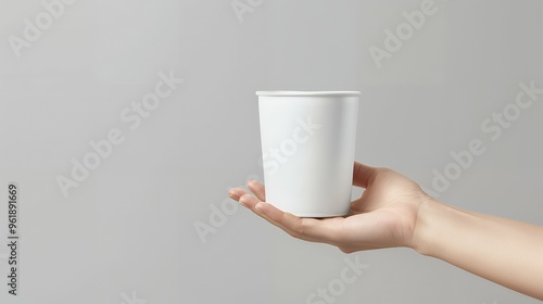 Minimalist Elegance: Hand Holding a Sleek, Empty White Tumbler for Modern Beverage Styling