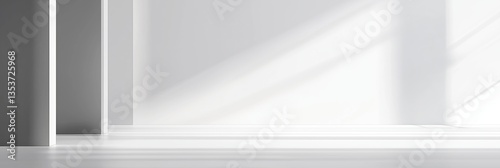 Minimalist expo banner design featuring clean white space and subtle shadows