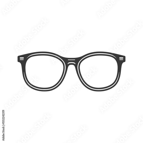 Minimalist Eyeglasses Icon: Black Frame on White Background, Clear Lenses