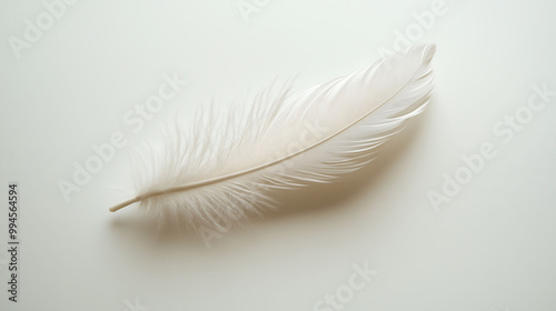 Minimalist Feather Suspended Against a White Background, Showcasing Soft and Simple Design