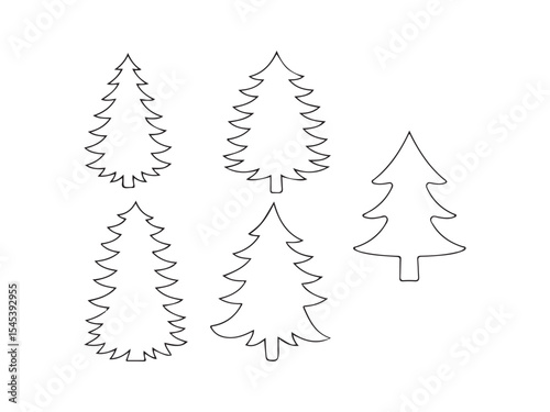 Minimalist festive fir trees graphic isolated on white background