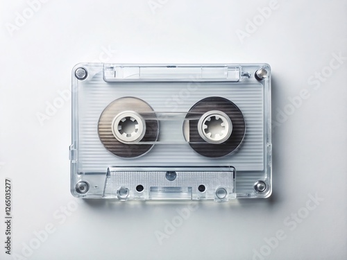 Minimalist Flat Lay Audio Cassette Tape on White Background