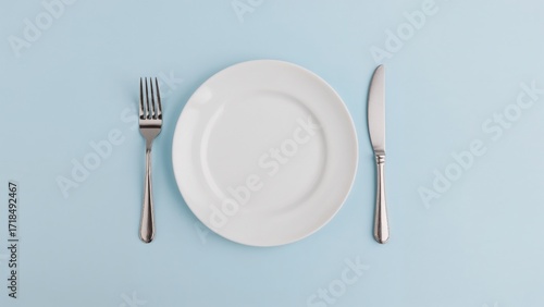 Minimalist flat lay white plate with silverware