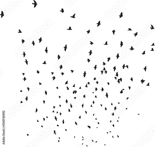 Minimalist Flock of Birds in Flight on White Sky Background