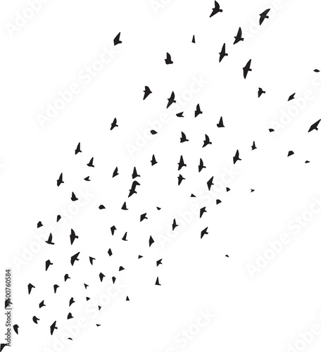 Minimalist Flock of Birds in Flight on White Sky Background