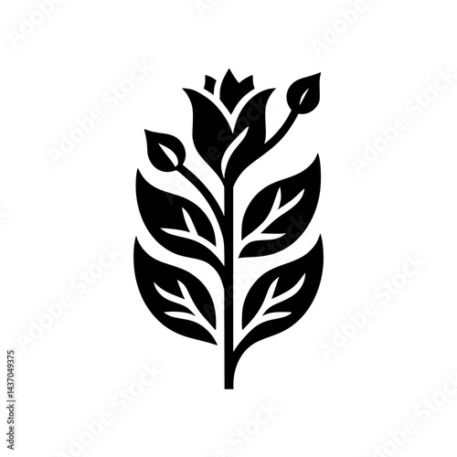 Minimalist Floral Emblem: Black & White Plant Design, Modern Logo