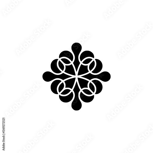 Minimalist Floral Ornament: Black & White, Geometric, Modern Design