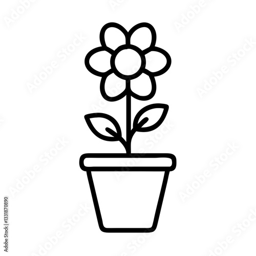 Minimalist Flower Pot Icon – Black and White Floral Line Art for Gardening and Decor
