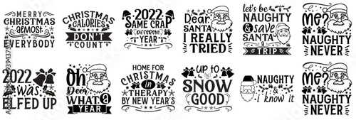 Minimalist Funny Christmas Quotes, Typographic Emblems Bundle Vector Illustration for Presentation, Decal, Greeting Card
