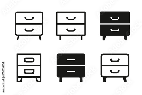 Minimalist Furniture Logos. Side table drawer. Set Logo of side table drawer: handle cutout minimal furniture icon. Icon set. harmonious logo variations of the