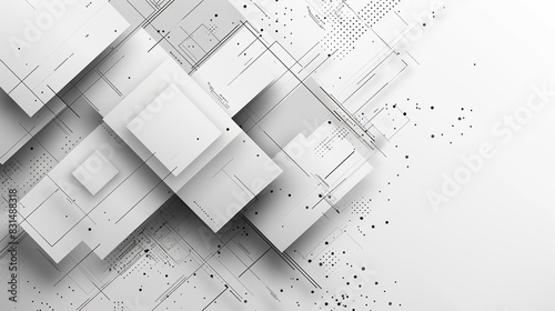 Minimalist geometric cubes with connecting lines and dots. Abstract white cubes on grey background