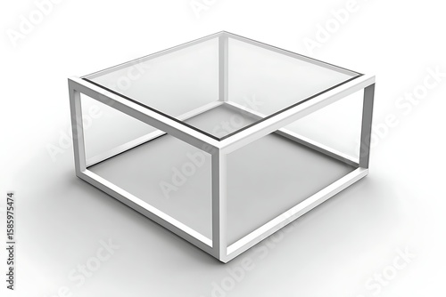 Minimalist Glass Top Coffee Table with White Metal Frame on White