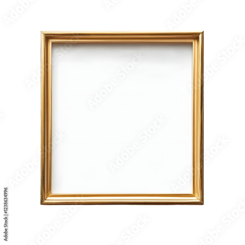 Minimalist golden frame mockup with a thin gold border on a white background, a simple square shape for artwork or picture display template
