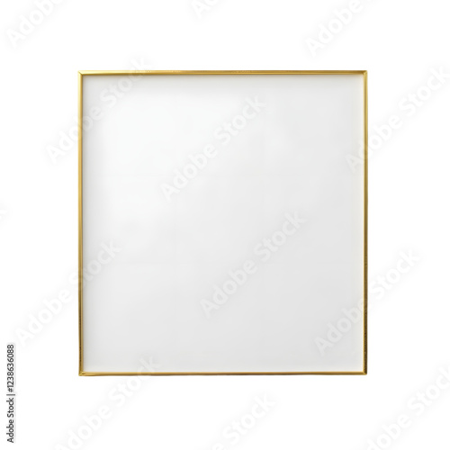 Minimalist golden frame mockup with a thin gold border on a white background, a simple square shape for artwork or picture display template