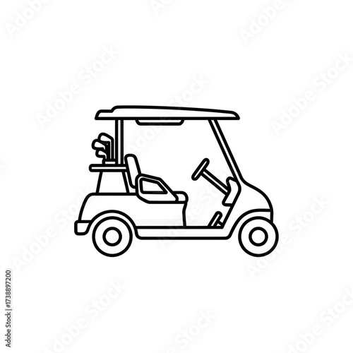 Minimalist golf cart illustration conveying sporting and recreational leisure activity