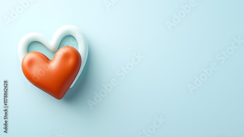 Minimalist graphic design of two interlocked red heart shapes in a stylized minimalist composition against a soft blue background Elegant and abstract representation of romance passion and emotion