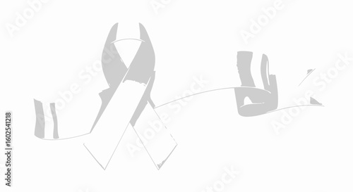 Minimalist gray ribbon artwork conveying advocacy and awareness on a white canvas that conveys unity and solidarity in support of serious health