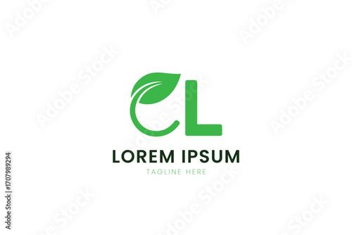 Minimalist green leaf logo design incorporating abstract cl letters for nature businesses