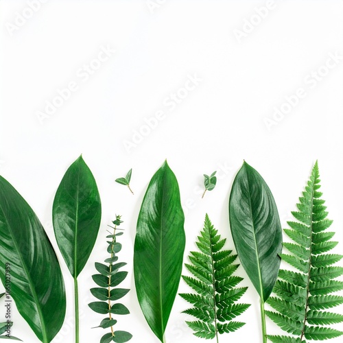 Minimalist green leaves on a plain white background, perfect for a simple modern design template.