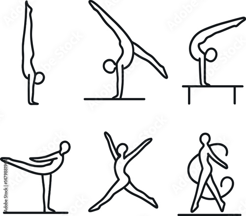Minimalist gymnastics icons set – silhouette, simple athlete and sport symbols