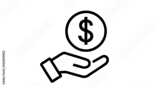 Minimalist Hand Holding Dollar Coin Icon – Financial Support Vector, dollar sign vector, money support, financial investment, cash assistance, financial help, black and white vector