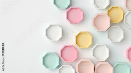 Minimalist hexagon grid, vibrant 3D space, modern elegance, Watercolor style