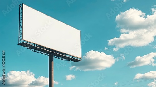 Minimalist highway billboard with a white screen, perfect for copy space, set against an open sky.