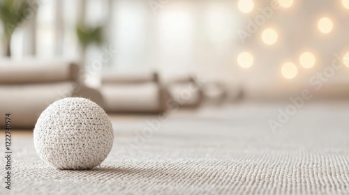 Minimalist home concept. A serene indoor wellness scene featuring a textured ball on a calming floor.