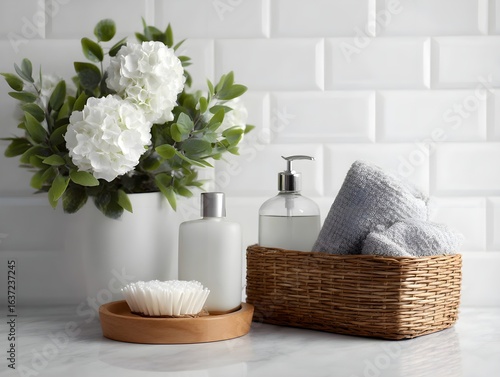 "Minimalist Home Decor with Towels and Flowers"
