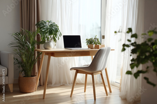 Minimalist Home Office Setup in Small Living Space