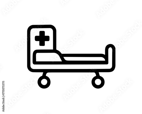 Minimalist Hospital Bed Icon with Medical Cross – Patient Care and Mobility Symbol