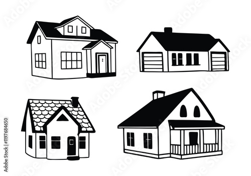 Minimalist House Line Art Collection | Hand-Drawn Vector Illustrations