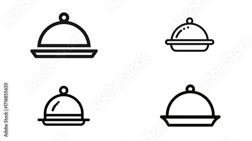 Minimalist icons of elegant food covers/domes, perfect for menus or restaurant-related design