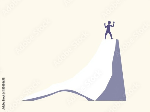 Minimalist illustration of a business person taking a bold step into the unknown, symbolizing courage, opportunity, and growth, new, courage, concept
