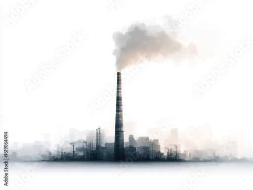 Minimalist Illustration of Factory with Smokestack and Emissions