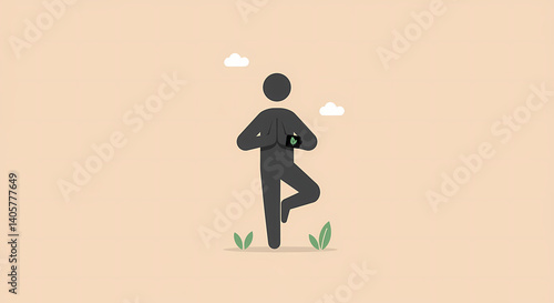 Minimalist Illustration of Stick Figure Doing Yoga Tree Pose with Wellness Smartwatch