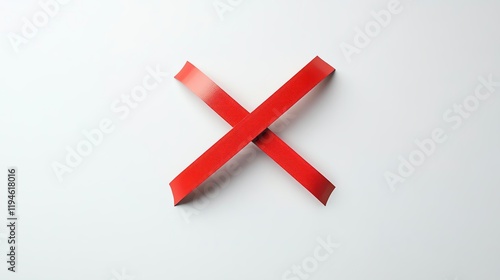 Minimalist image of a red paper cross on a white background, symbolizing deletion or error in a simple artistic style.