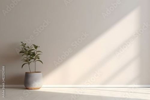 Minimalist Indoor Scene with Potted Plant and Sunlit Wall