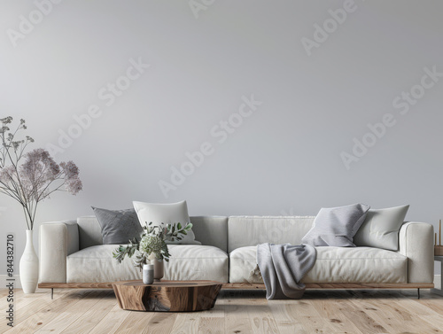 Minimalist interior design composition with minimal furniture and copyspace for text. Home decor concept image.