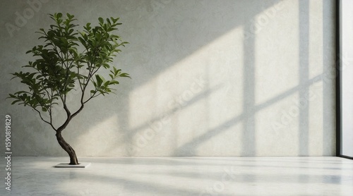 Minimalist Interior Design Featuring a Green Tree in a Sunlit Room