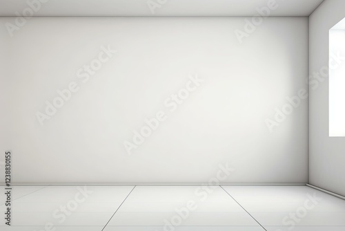 Minimalist interior design featuring an empty white room with tiled floor and a single window providing natural light