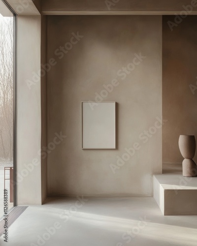 Minimalist Interior Design with Blank Canvas and Modern Vase