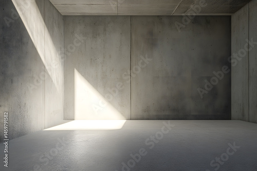 Minimalist interior of an empty room illuminated by natural light in a modern building