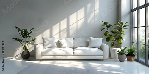 Minimalist interior photo with soft natural light and pearlescent white decor. Concept Minimalist Décor, Soft Lighting, Pearlescent White, Interior Photography