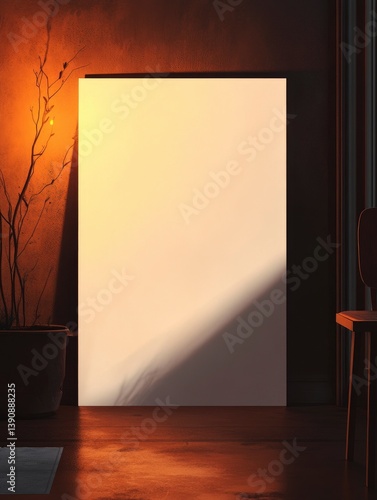Minimalist Interior with Blank White Canvas for Art Mockup Display