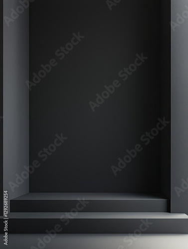 Minimalist Interior with Dark Wall and Steps in Neutral Tones