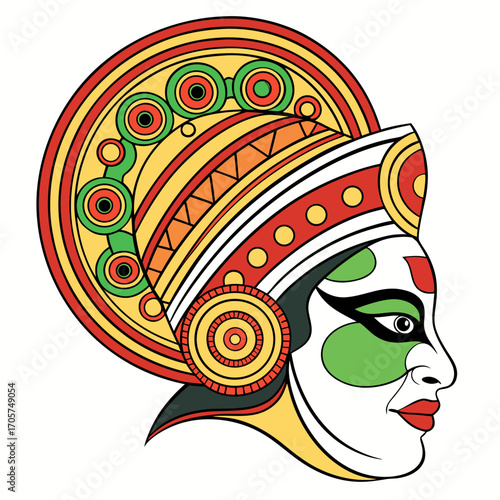 Minimalist Kathakali Face Vector – Traditional Indian Dance Mask Illustration