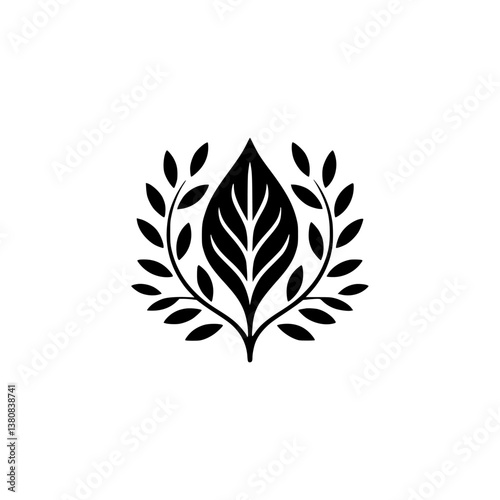 Minimalist Leaf Emblem: Black & White Nature Icon on White Background