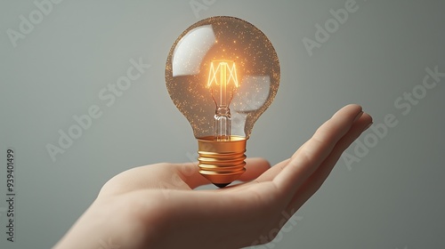 Minimalist light bulb, hovering over hand, white background, 3D illustration, No logo, No Trademark, No text, minimal concept with copy space for stock photo