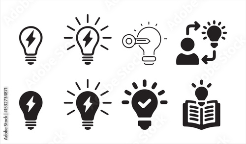 Minimalist Light Bulb Icon Set – Creativity, Innovation, and Eco Ideas. Victor illustration eps 10